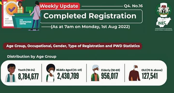 This chart, released by INEC on August 1, 2022, shows that young people make the bulk of Nigerians who completed voter registration in the recently concluded registration drive.