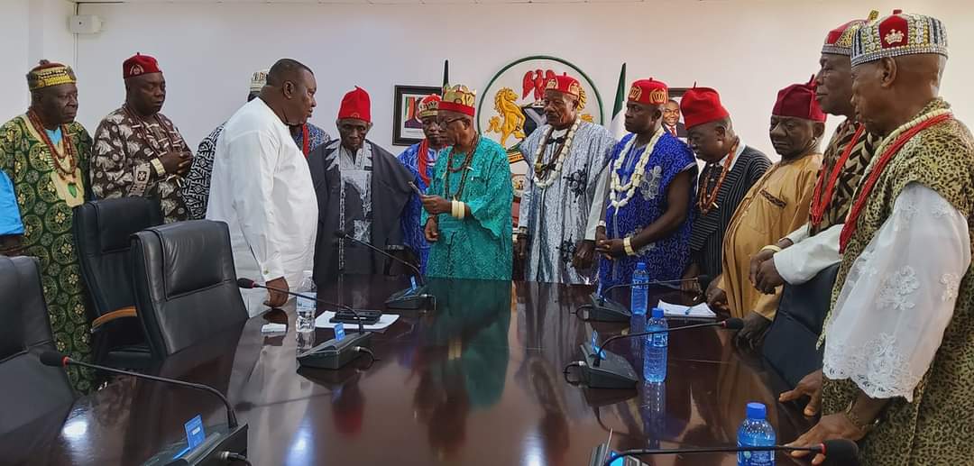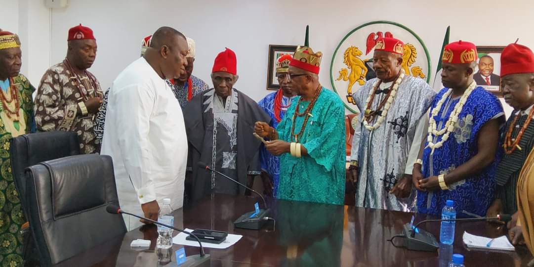 Traditional Rulers from Enugu North Senatorial District of Enugu State have presented ‘Ofo’ to Governor Ifeanyi Ugwuanyi, who is the candidate of the Peoples Democratic Party (PDP) for Enugu North Senatorial District in the 2023 general election, as a symbol of their solidarity and endorsement of his senatorial bid.
