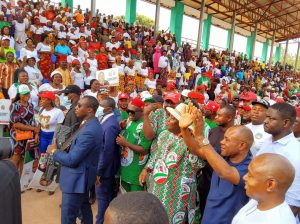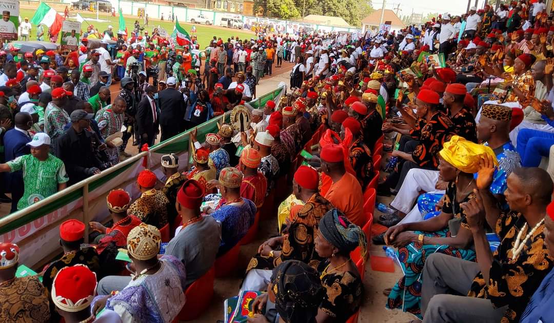 They expressed their profound gratitude during the Enugu North Senatorial District mega endorsement rally for PDP candidates in the forthcoming elections held at the newly constructed Nsukka Township Stadium which was attended by Governor Ugwuanyi, his wife, Mrs. Monica Ugochi Ugwuanyi, Dr. Mbah, Barr. Ossai, and other PDP candidates in the state.