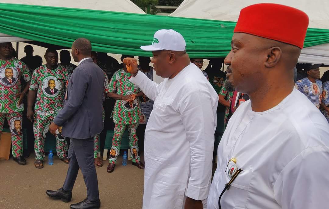 The PDP candidate for Nsukka/Igbo-Eze South Federal Constituency, Chief Engr. Vita Abba, the members representing Nkanu West, Nsukka East and Ezeagu constituencies in the State House of Assembly, Rt. Hon. Iloabuchi Aniagu, Rt. Hon. Dr. Chinedu Nwamba and Rt. Hon. Chima Obieze respectively, witnessed the event. #amokelouis