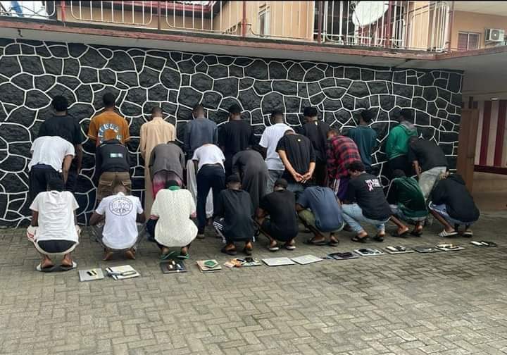 The suspects are: Doroye Olumide Joseph, Ajayi Oluwaseyi Emmanuel, Olalekan Olaniyi Akonji , Oluwadare Samuel Olawale, Oloyede Olakunle, Okon Ayomide Cornelius, Omokaro Ailele Jeffery, Oyedokun Opeyemi Abdulrazaq, Olowofela Temidayo, Mosess Ossai, Dada Samuel Abiodun, Francis Victor Oluwatobi, Ayobami Akanji, Osun Gbenga, Ajayi Femi, Adewara Oluwadamilola, Anthony Okun, Olusegun Ibukunoluwa, Boluwatife Adewale, Jerry Agoh, Oluseye Ayomipo, Anthony Adedolapo Dada, John Adamso Tobi, Asagba James Oluwaseun and Ideh Rukeme Oghenetega.