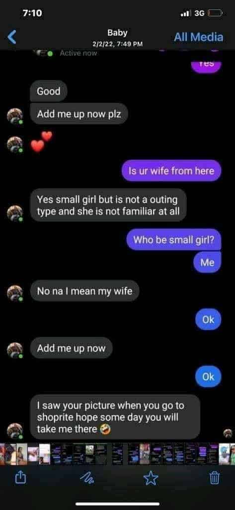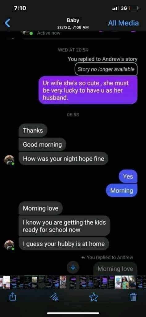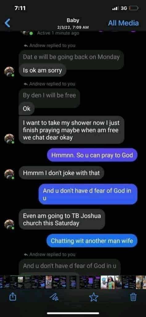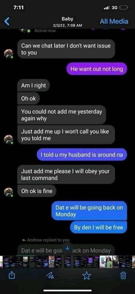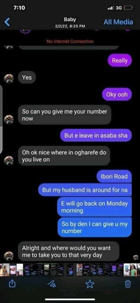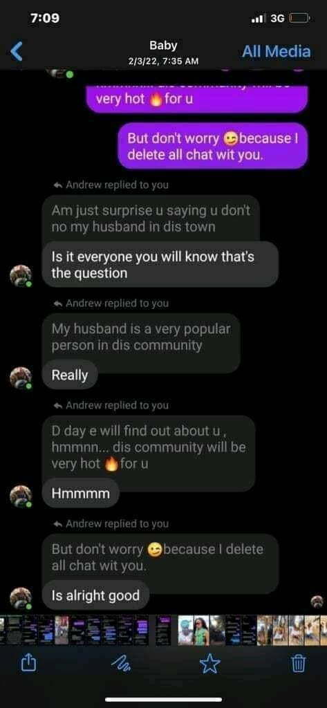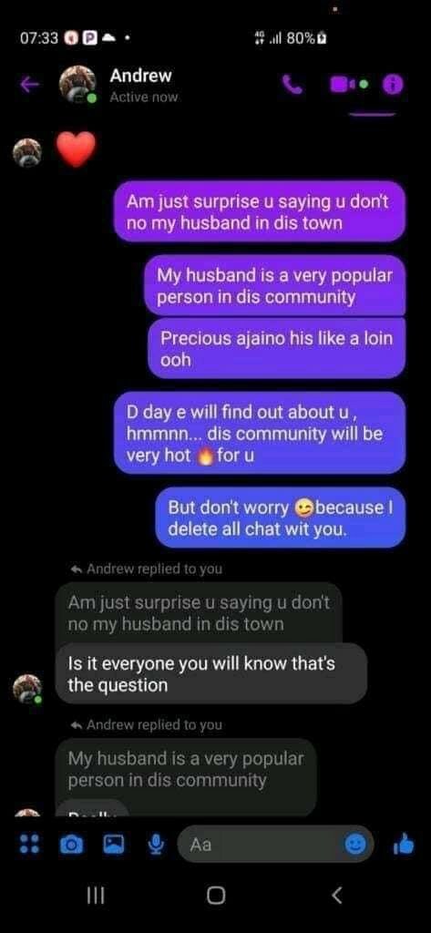 The randy Andrew Oscar Lee had some Facebook chats with the wife of Hon. Precious Ajaino, the Director General of Direct Labour and also the former local government chairman of Ethiope West L.G.A, Delta State.