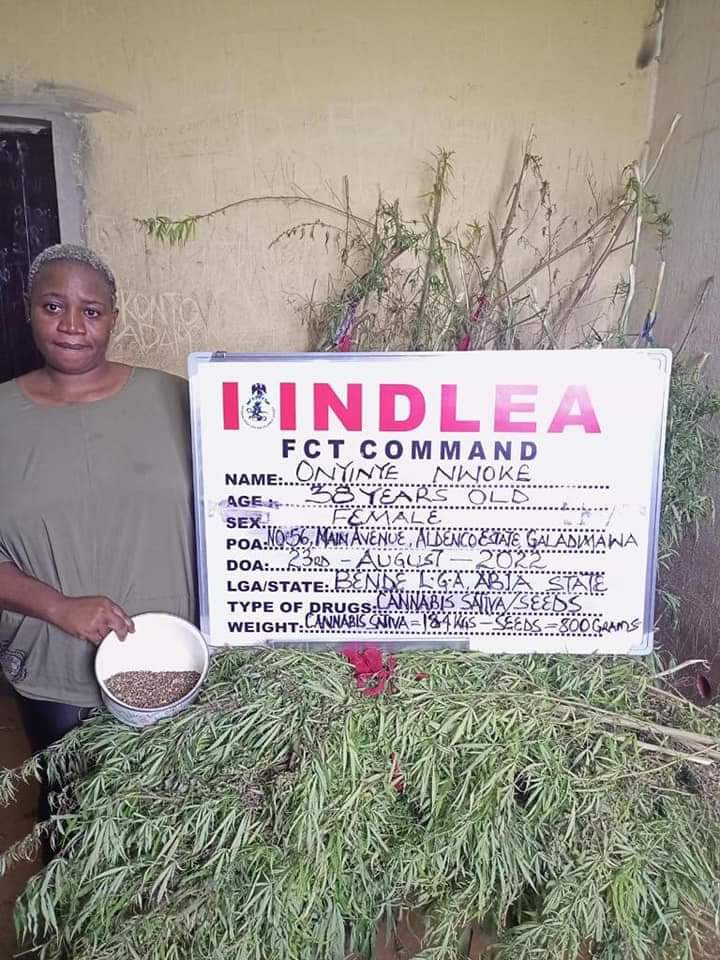 Operatives of the National Drug Law Enforcement Agency, NDLEA, have arrested an Abuja businesswoman, Onyinye Nwoke, for planting and selling cannabis.