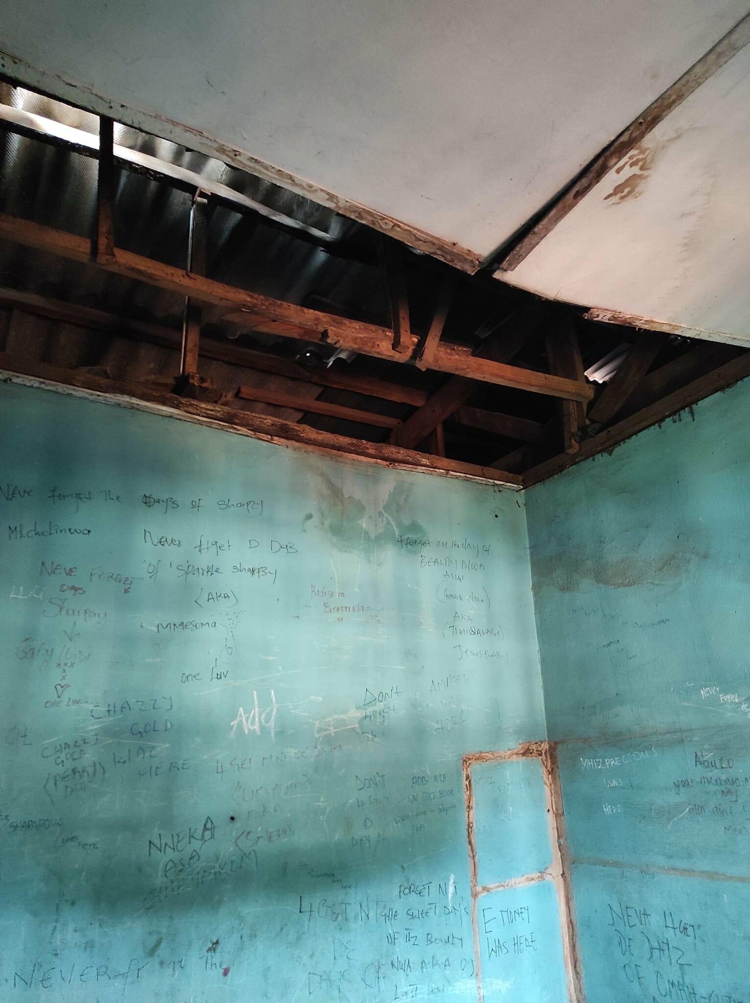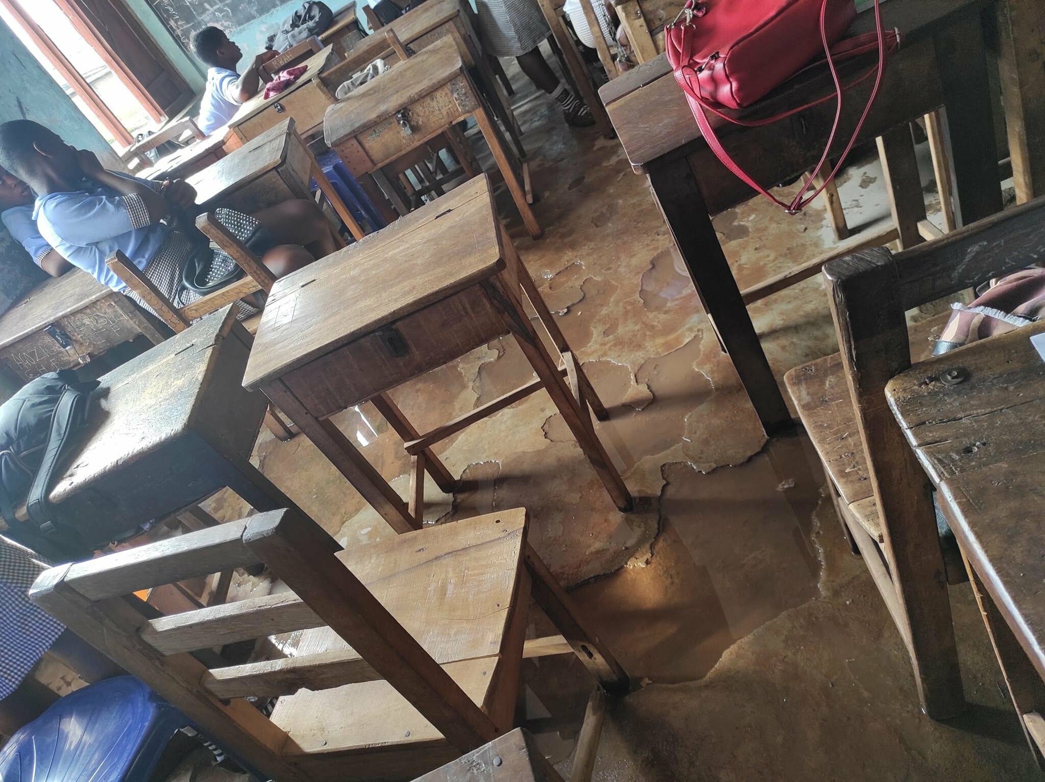 The entire school is a disgrace to the distinguished legacies she has left behind. Imagine walking into the classrooms and seeing students struggling to sweep off the water logged in the unbelievable classrooms. The library, the principal’s office, the laboratory, the hall and nearly every building in the school is leaking and some are even without roofs!