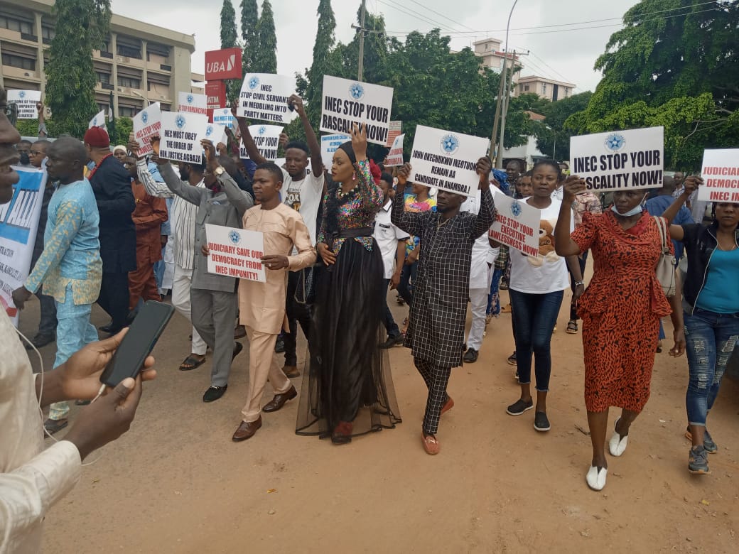 He stated this in a peaceful protest organized by the party at the Independent National Electoral Commission’s Headquarters, Abuja in the early hours of today.