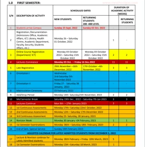 Anchor University Lagos Academic Calendar for 2022/2023 Academic Session