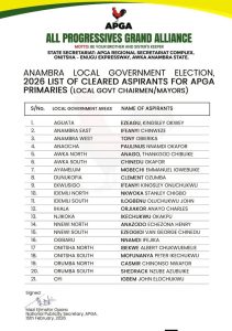 As the primaries commence, party stakeholders have called for peaceful conduct, internal democracy, and adherence to APGA’s guiding principles, while wishing all cleared aspirants a credible and successful electoral exercise.