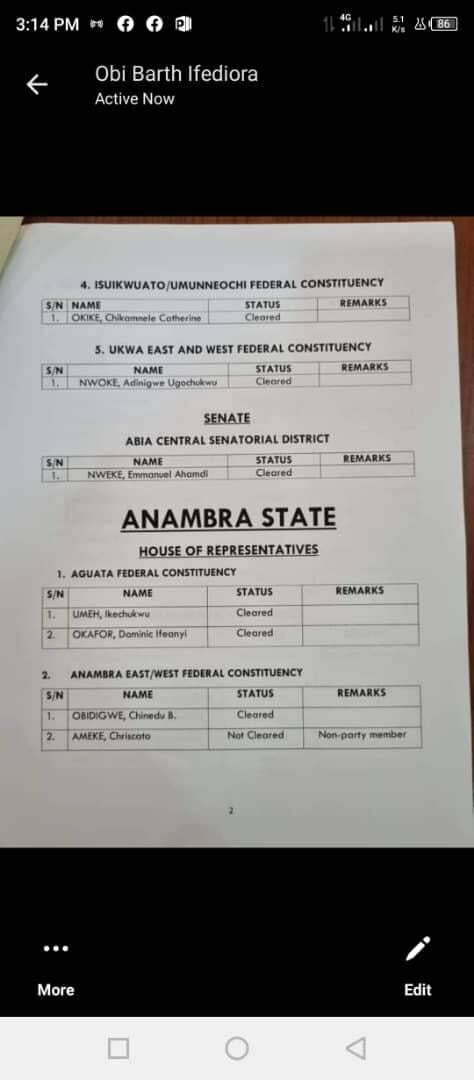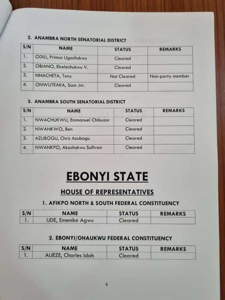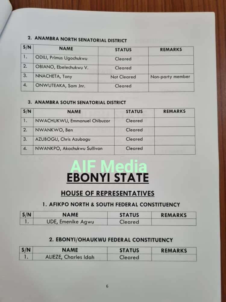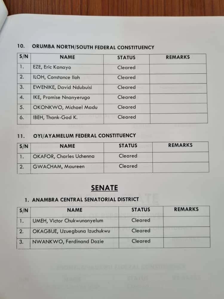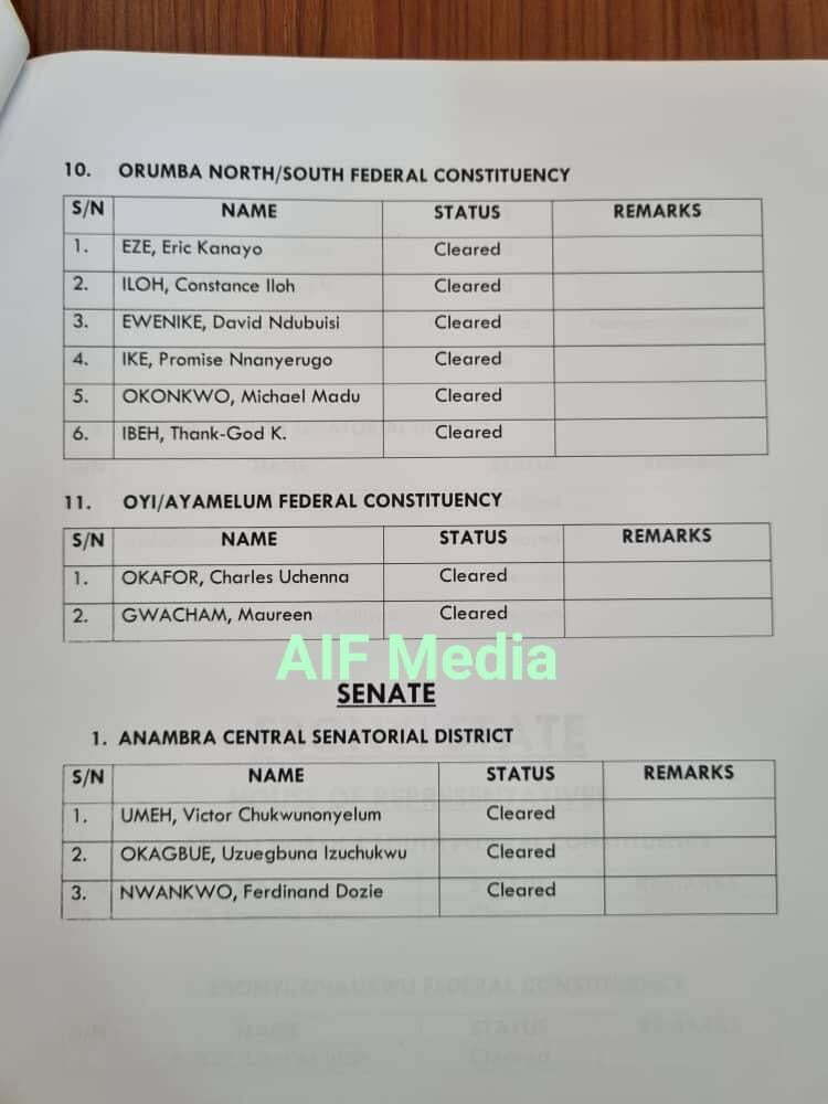 In senate, APGA screening report for the 3 senatorial zones in Anambra state cleared Umeh, Osodieme, OnyeNdozi, Uzu, Primus ahead of primaries election.