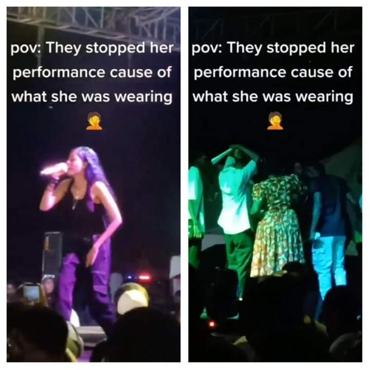 A TikToker, Andrea Eyonsa, who shared the video said, “POV: They stopped her performance cause of what she was wearing.”