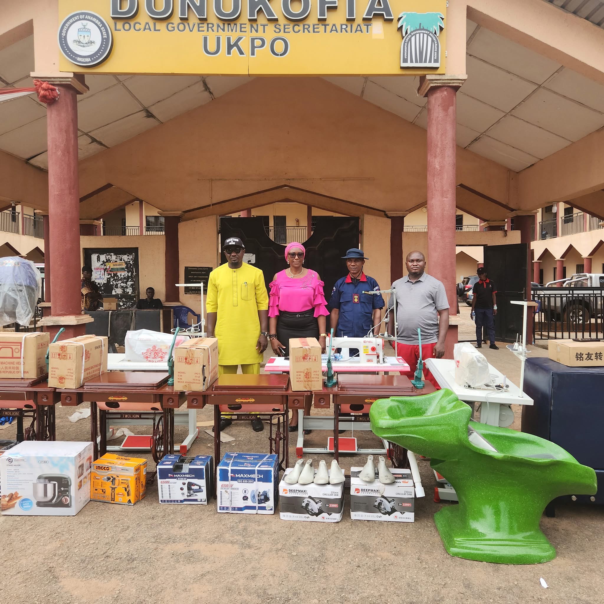 • Initiated Dunukofia Local Government Council’s Youth Empowerment Scheme where over 60 Dunukofia Indigent Youths are provided with shops, equipment and other support materials, etc, an others with equipment and financial support according to their various fields of endeavour and skills across communities in Dunukofia LGA. These to be commissioned in batches.