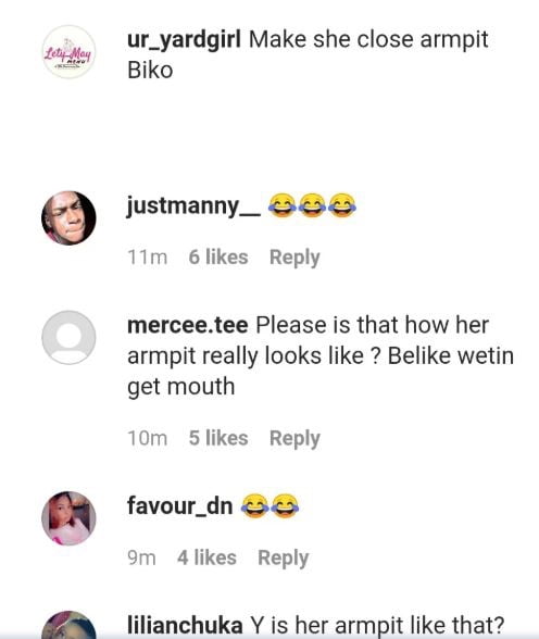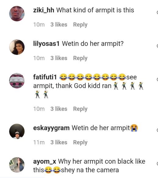 Nigerians have reacted and shown disgust over the sight of her armpit.