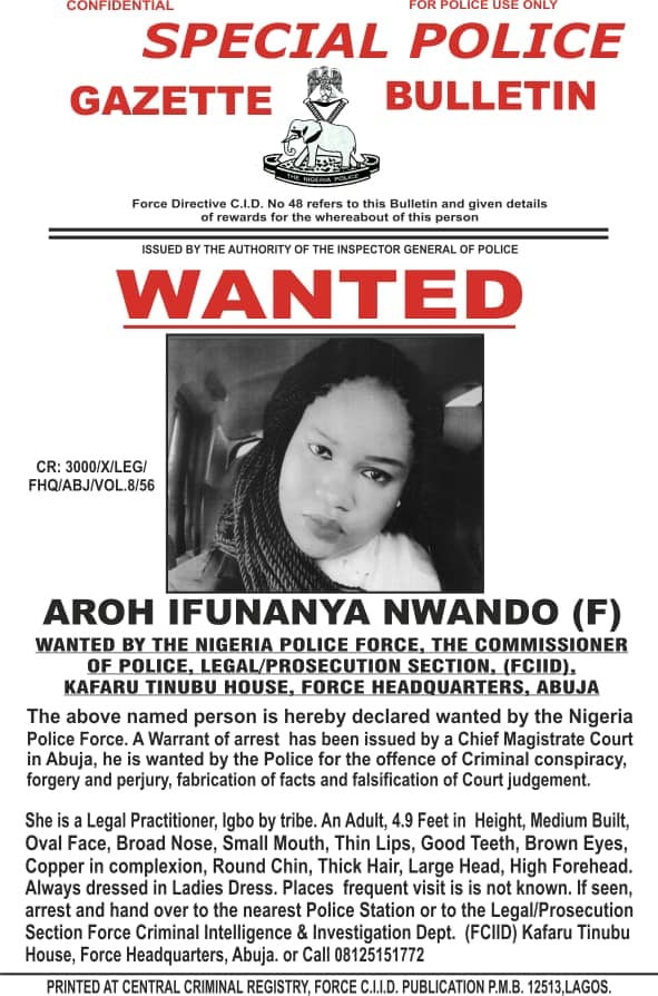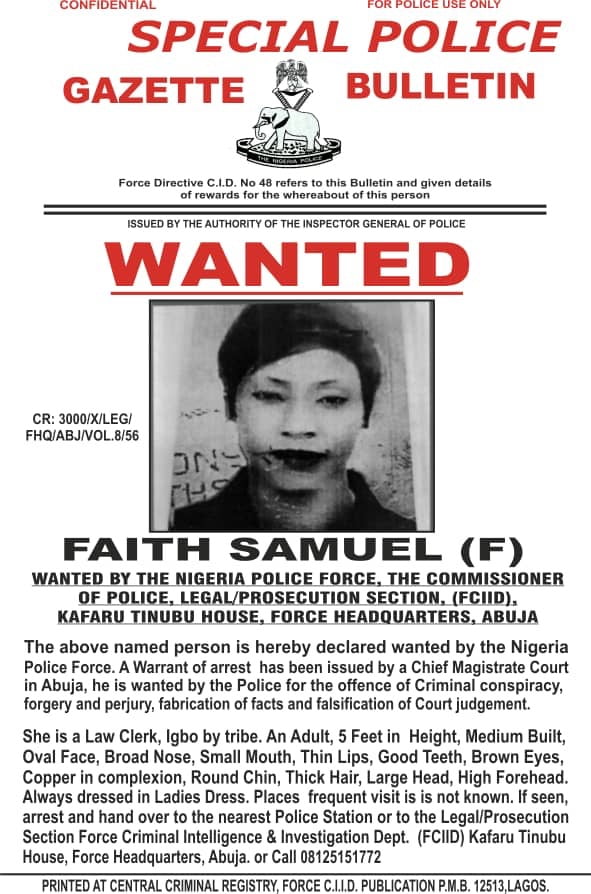 Pursuant to a warrant of arrest issued by a Chief Magistrate Court in Abuja, in a special police gazette bulletin: CR:300/X/LEG/ , FHQ/ABJ/VOL.8/56 published by the central criminal registry of the Force Criminal Intelligence and Investigation Department(FCIID), the Police requested anyone with useful information on the whereabouts of the suspects to arrest and handover the suspects to the nearest Police Station or the legal prosecution section of the FCIID, or call 08125151772.