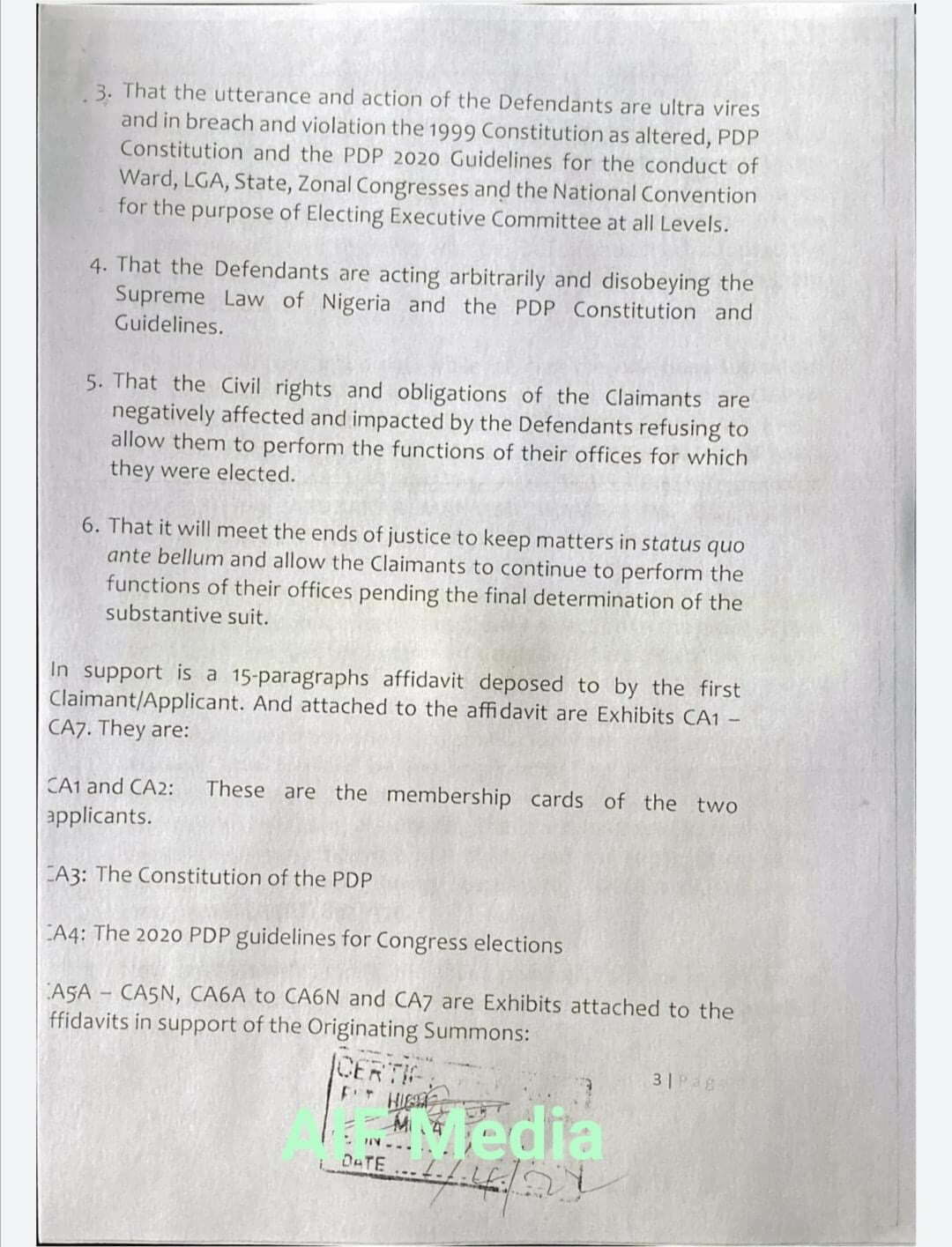 According to the court order seen by AIF Media, the Claimants, one Moses Akam and Ikenna Evans who are lackeys of Chief Chris Uba approached the FCT high court claiming to have contested and became the elected ward and LG executives of PDP in 14 LGAs of Oyi, Aguata, Anambra east, Anambra west, Ayamelum, Dunukofia, Ekwusigo, Idemili south, Ihiala, Nnewi South, Onitsha north, Onitsha South, Orumba North and Orumba south.