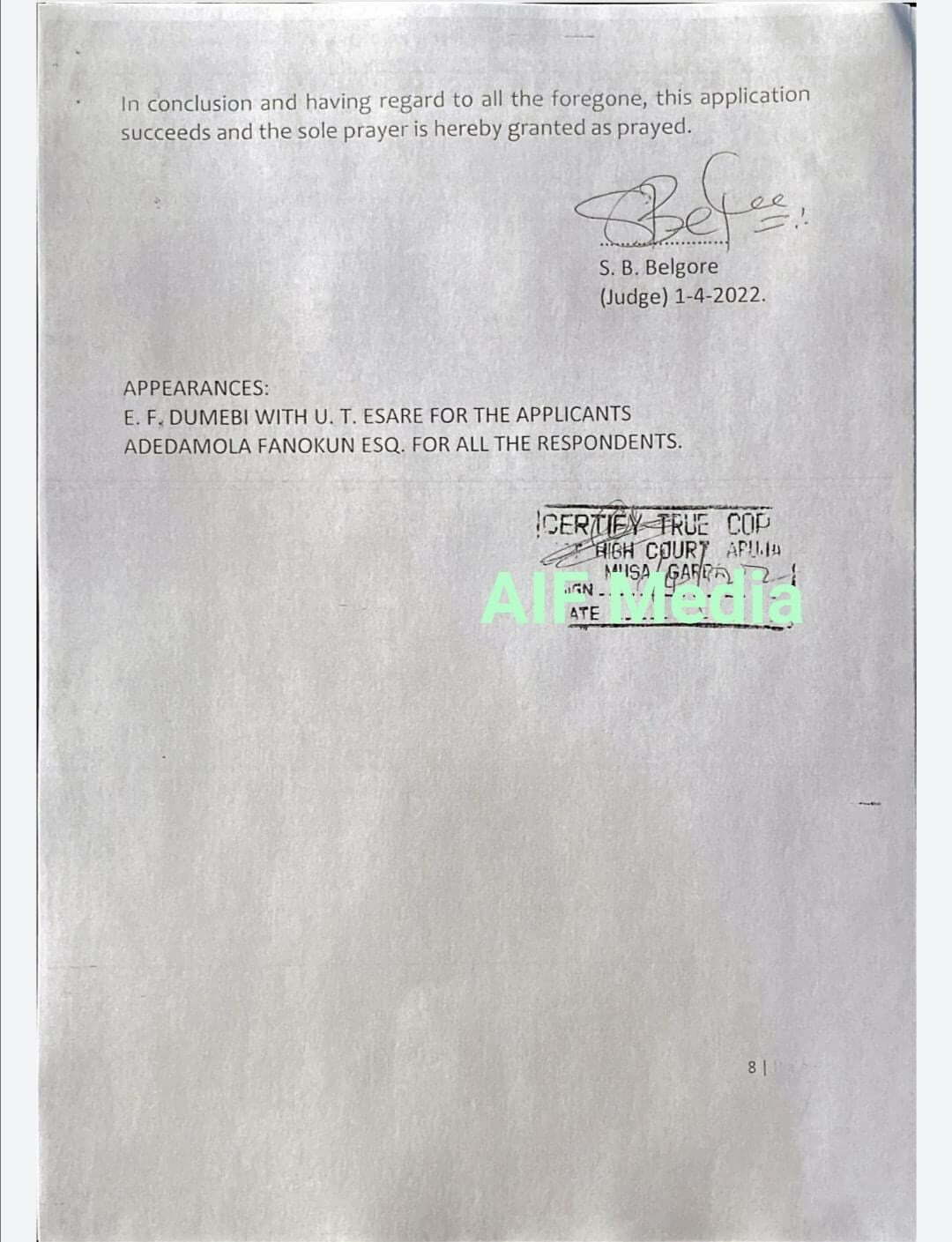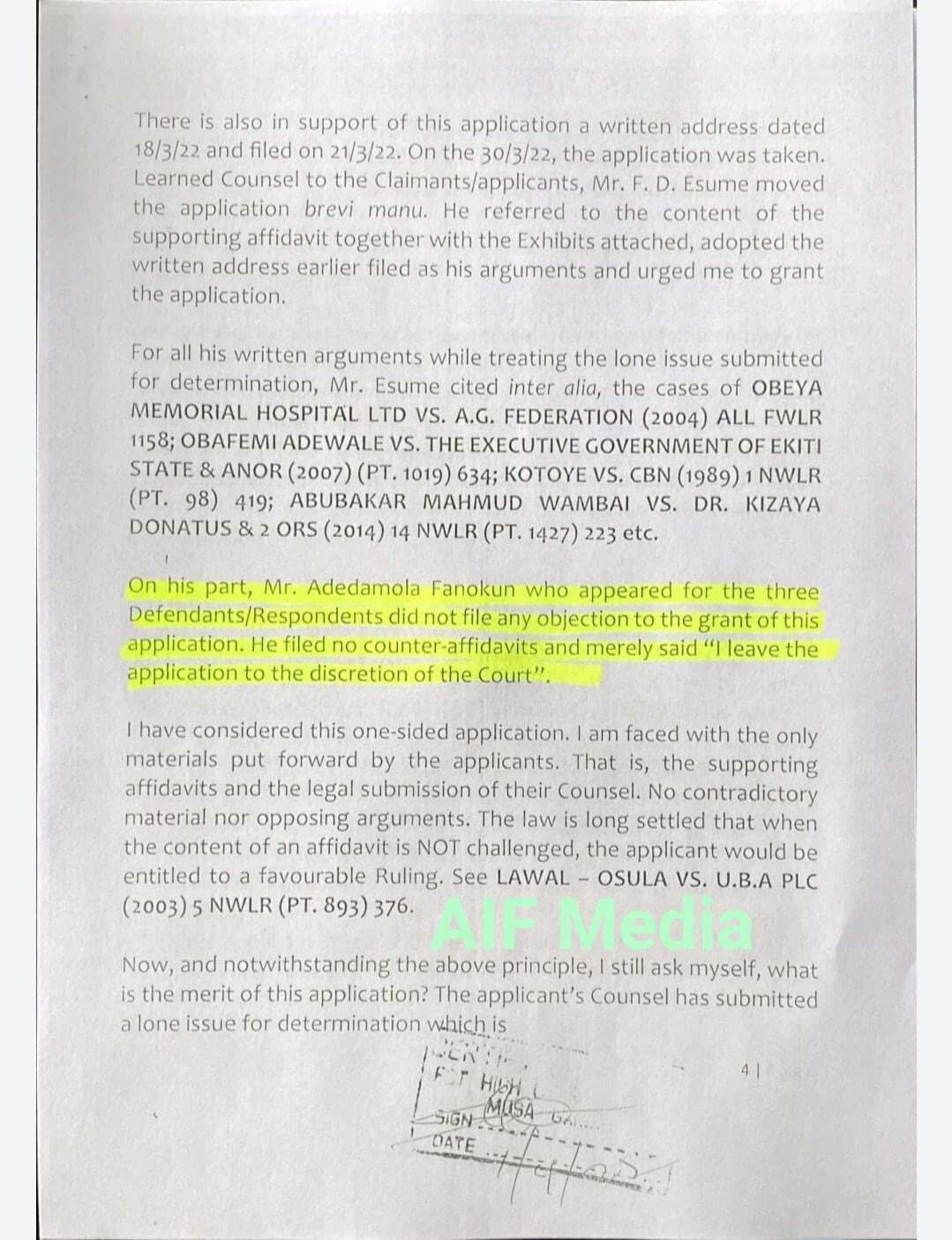 The court granted them all their prayers and further gave an order restraining PDP from dealing with any other executive in the affected LGAs.