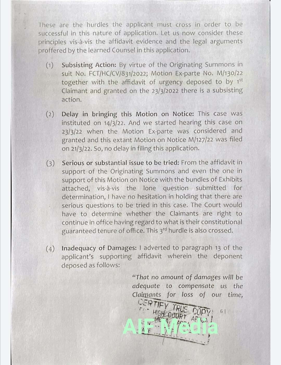 They told the court that to their greatest charging, the National Chairman of PDP on March 8, 2022 invited them to Abuja office of PDP and told them that they are no longer allowed to perform the functions of the offices of which they were elected.