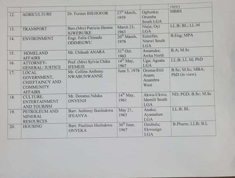 Anambra State Governor, Prof. Charles Soludo has finally released list of Commissioner-nominees members of the State Executive Council.