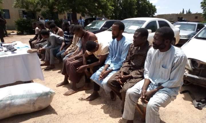 The Katsina State police command on Wednesday paraded a 30–year-old ex-convict, Muhammed Lawal along with 18 others for various crimes including car snatching, house burgling, kidnap and being informants to terrorists.