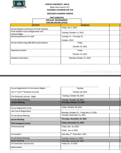 This is to inform all the regular programmes students of Veritas University, Abuja, that the management of the institution has published the academic calendar for the 2022/2023 academic session.