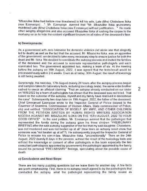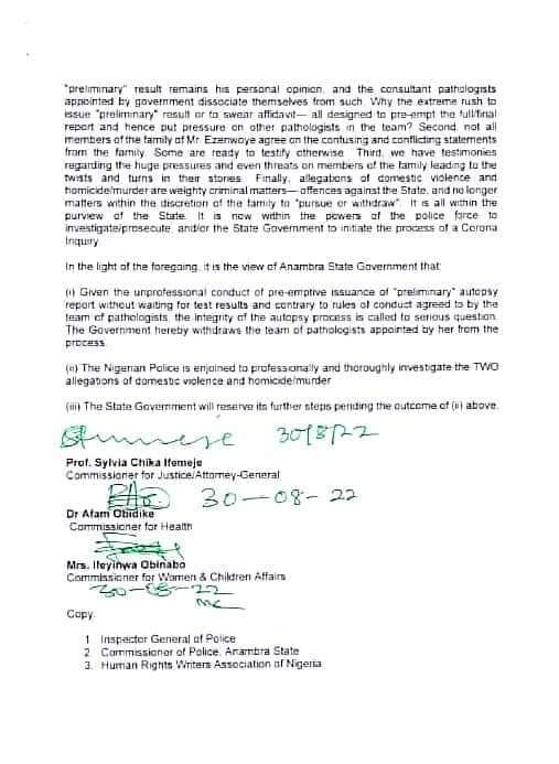 The position of Anambra state govt was signed by the Commissioner for Justice/Attorney General, Commissioner for Health and Commissioner for Women Affairs.