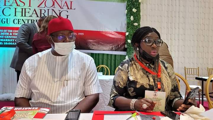 The Senator representing Anambra Central Senatorial District, Senator Uche Ekwunife, moments ago joined other stakeholders of the southeast region at the public hearing for the review of the 1999 constitution (as amended) holding in Enugu.