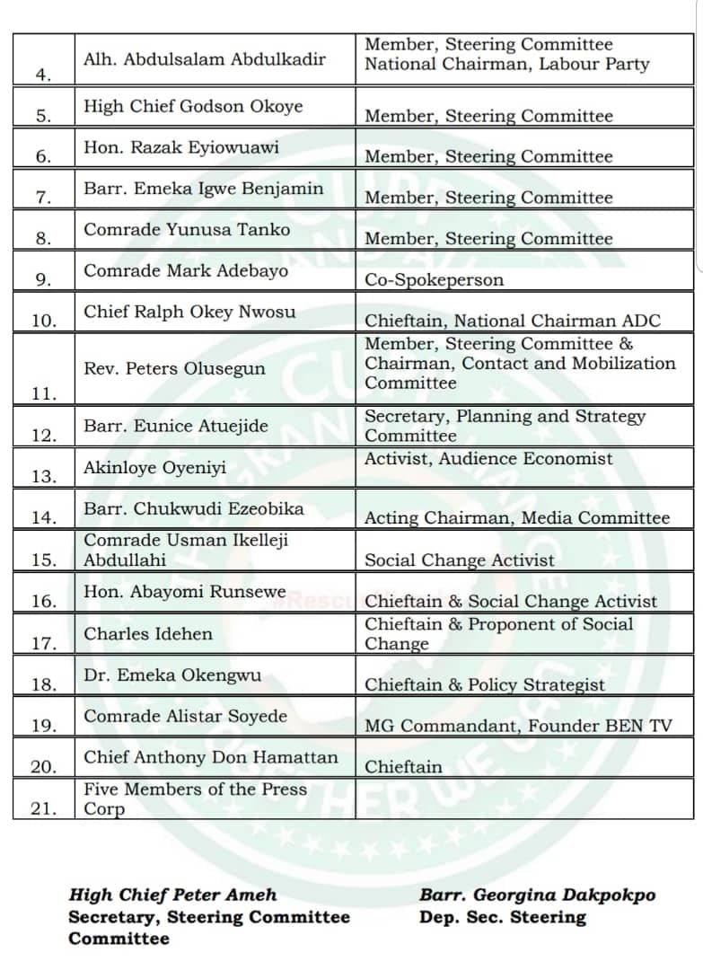 The committee will be co-chaired by Alhaji Abdulsalam Abdulkadir and Dr. Emeka Okengwu has Akinloye Oyeniyi as secretary. Other members include Dr. Jalil Tafawa Balewa, Comrade Usman Ikeleji Abdullahi, Comrade Alistar Soyede, and Hon. Abayomi Runsewe.
