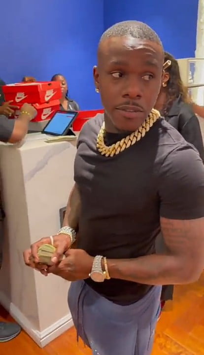 Dababy was also captured at the bank withdrawing some money as fans go extra mile to hail him and he sprayed them in return.