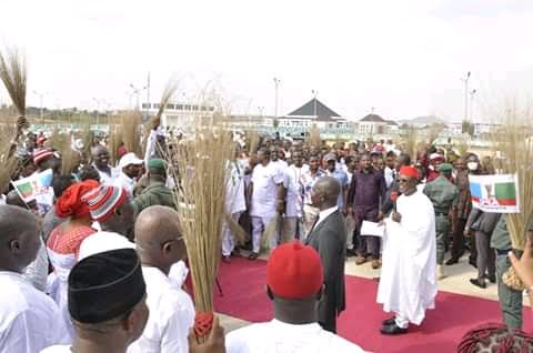 The event held at the Governor’s Lodge premises, New Government House, Abakaliki attracted the presence of all the 13 Council Chairmen who led their appointees on the colorful event which turned into a mini-rally as the supporters danced jubilantly to demonstrate their solidarity.