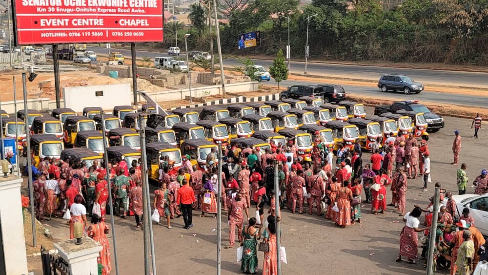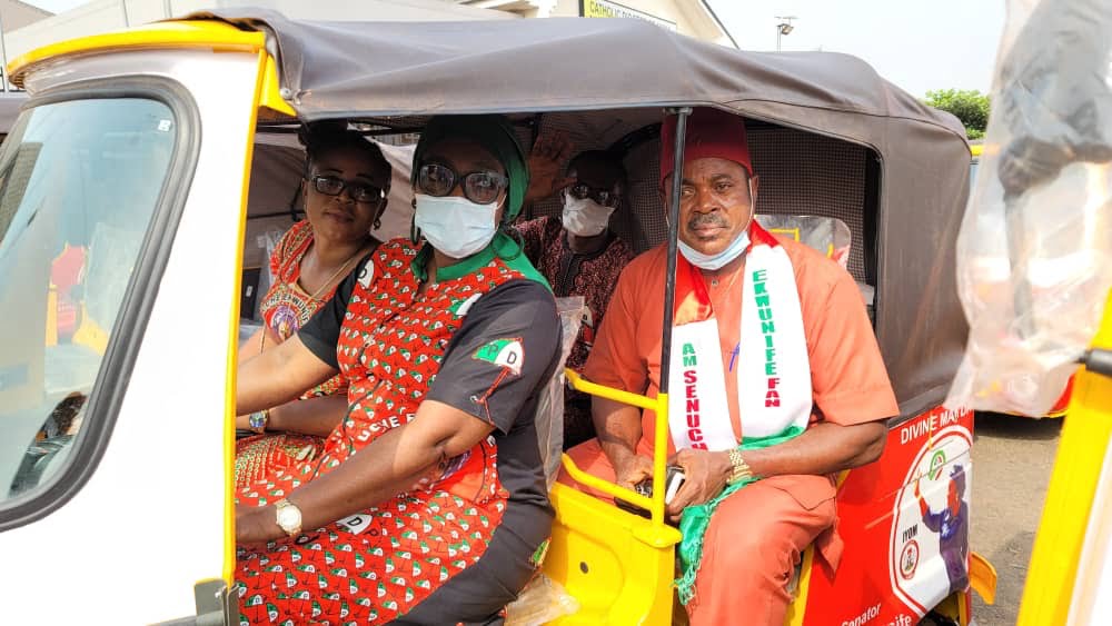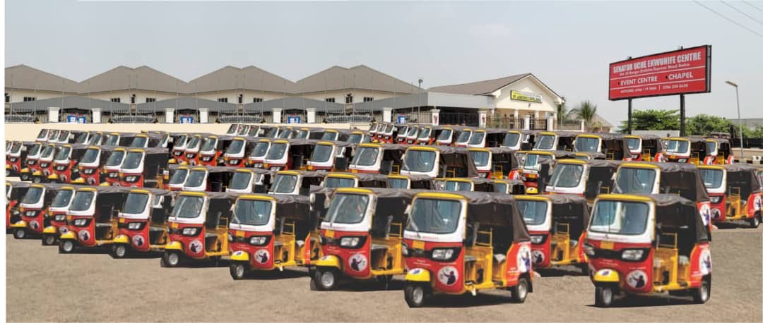 The keys of the tricycles were given to the beneficiaries at the ever busy Senator Uche Ekwunife Centre Awka.