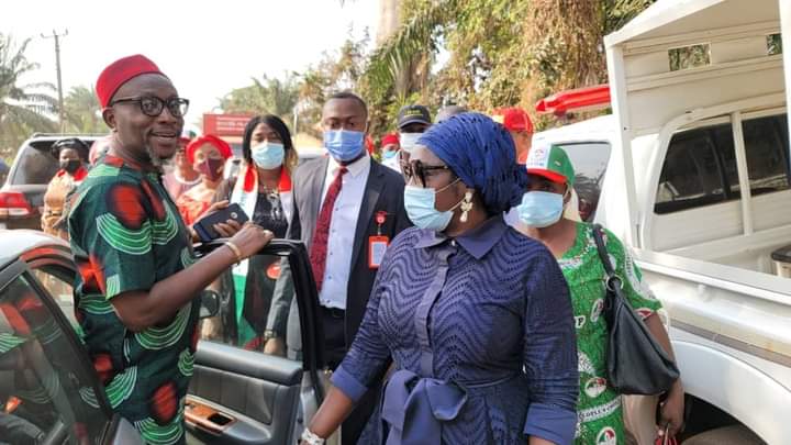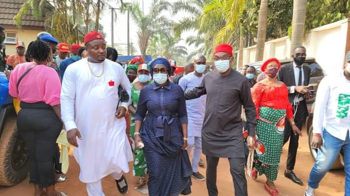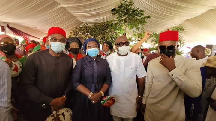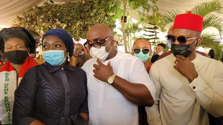The Senator representing Anambra Central Senatorial District, Uche Ekwunife (Iyom) today, Friday, February 5, 2021 joined the PDP Vice Presidential candidate in the last elections, HE Peter Obi and other party members to Commiserate with the family of Dr. Obiora Okonkwo as late Ezinne Roseline Okonkwo was laid to rest.