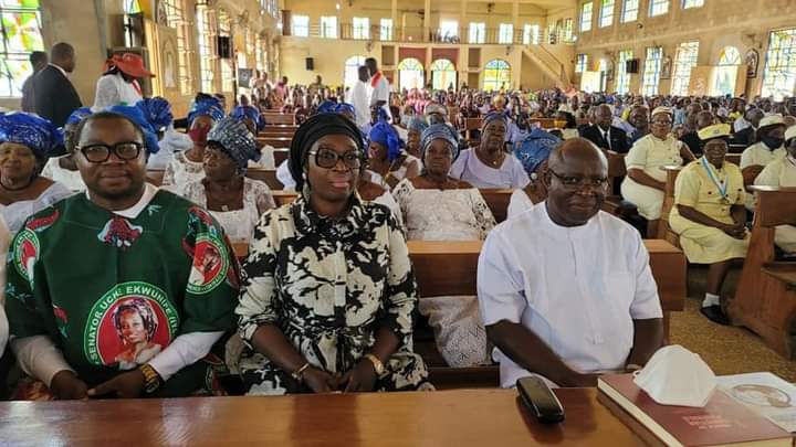 The funeral mass which was held at St. Patrick Catholic Church, Awgbu was celebrated by the Bishop of Catholic Diocese of Awka, Most Rev. Paulinus Chukwuemeka Ezeokafor and had in attendance dignitaries namely Chief Sen Sir Victor Umeh and Hon. Ebele Ejiofor (Member representing Anaocha Constituency I in ASHA).