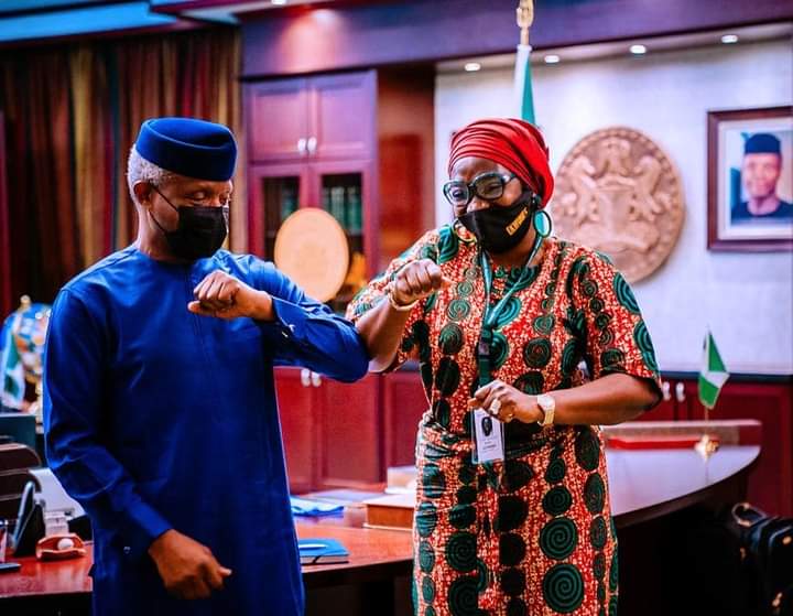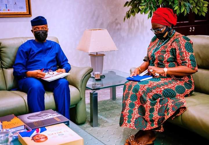 The Chairman Senate committee on Science and Technology, Senator Uche Ekwunife on Thursday, April 1, 2021 was received in audience by the Vice President Federal Republic of Nigeria, Prof. Yemi Osinbajo, SAN, GCON at the Statehouse, Abuja.
