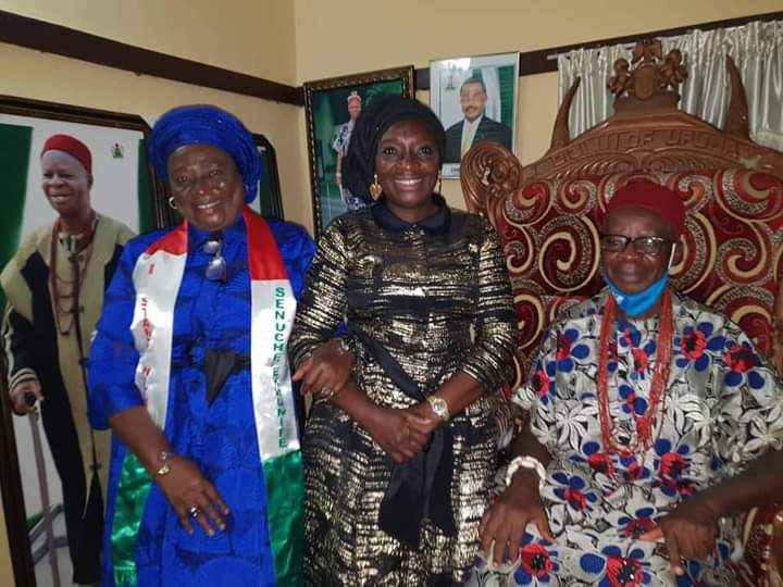 The Senator representing Anambra Central Senatorial District, Senator Lady Uche Ekwunife(Iyom), proceeded to Ufuma, in Orumba North council area, on a courtesy visit to the traditional ruler of the community, Igwe S. Chika Uchime(Mba Diji 111 of Ufuma).