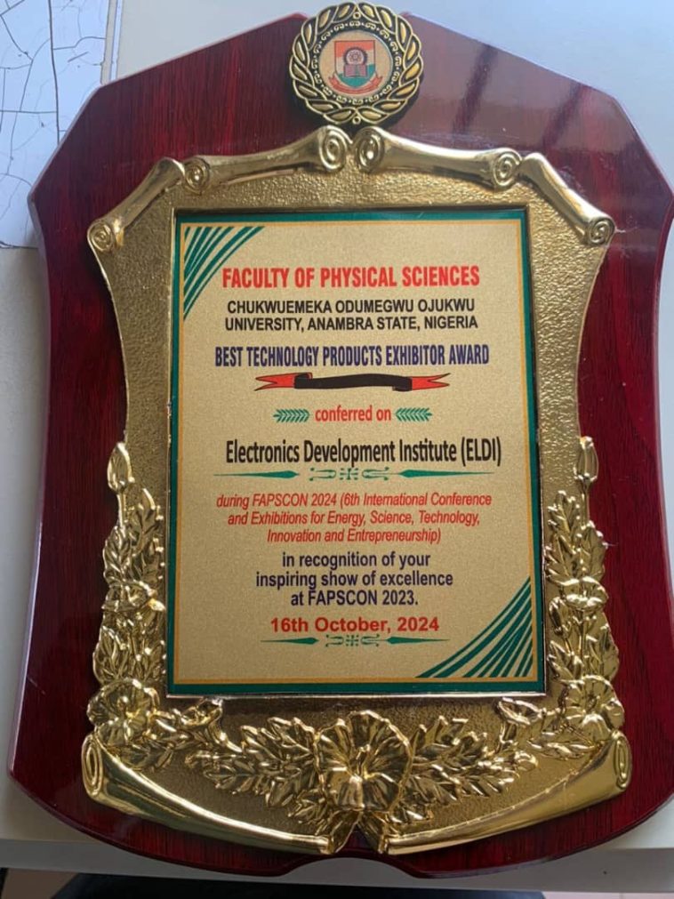 I am not a mind reader but I can graciously imagine the amount of joy on his face after the news broke that the Faculty of Physical Sciences, Chukwuemeka Odumegwu Ojukwu, University, at the ongoing 6th Annual International Conference and Exhibitions conferred the award of the “Best Technology Products Exhibitor” on the Electronics Development Institute, ELDI.— a development institute under NASENI.
