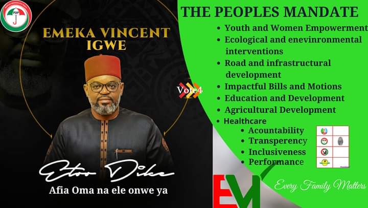 As the 2023 general election draws close, Awka North and South must take a firm stand and go all out in support of one of their own, Chief Emeka Vincent Igwe, the one who has their interests at heart and who has been there for them over the years by sending him to the Federal House of Representatives to represent the constituency.