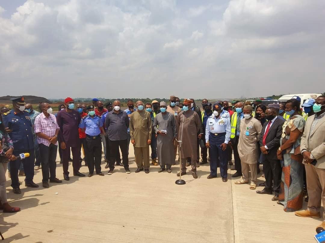 Also on the inspection tour were the Air Officer Commanding Ground Training Command, NAF, Enugu, Air Vice Marshal Idi Amin, the Managing Director of the Federal Airports Authority of Nigeria (FAAN), Capt. Hamisu Rabiu Yadudu, the Enugu Airport Manager, Member representing Enugu East/Isi-Uzo Federal Constituency, Hon. Prince Cornelius Nnaji, Mrs. Cecilia Oguama, the Chairman, South East Governors’ Forum Airport Rehabilitation/Palliative Works Committee, Engr. Chris Okoye, the Enugu State Commissioner for Works and Infrastructure, Engr. Greg Nnaji, his Information counterpart, Nnanyelugo Chidi Aroh, and the Chairman, Enugu Capital Territory Development Authority, Dr. Josef Umunnakwe Onoh, among others.