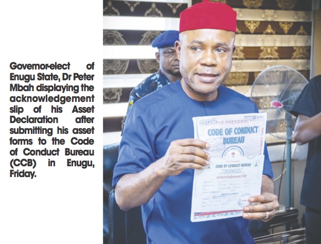 Governor-elect of Enugu State, Peter Mbah, has declared his assets to the Code of Conduct Bureau (CCB).