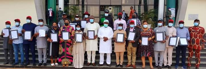 One of the climaxes of the visit was the presentation of their Certificates to Gov. Ugwuanyi.