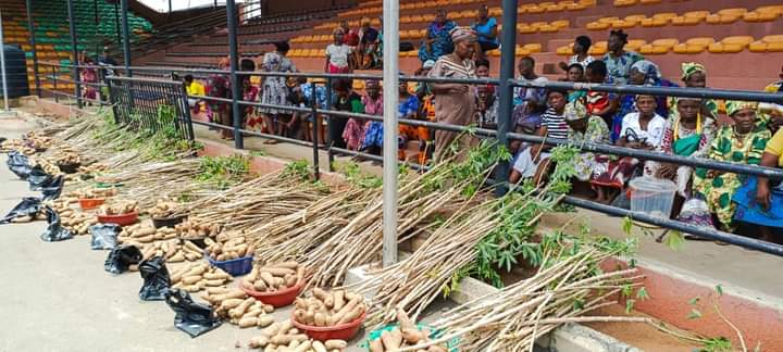 The exhibition arena looked more like a harvest field, as farm produce including yam, cocoyam, vegetables, plantain, cassava stick, among numerous others caught the eyes.