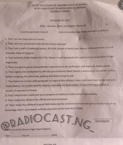 He went further to inserted a clause in an oath of allegiance he served his staff that one who fails to keep to his new terms will pay back Authority FM one year salary.
