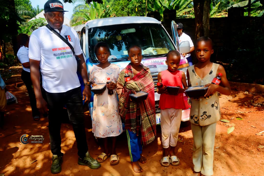 The Fela Ejiofor Foundation, in collaboration with Dechi Luxe, on Wednesday, December 25, 2025, fed no fewer than 500 street dwellers and vulnerable persons as part of activities marking the Christmas celebration. Bags of rice and ingredients were also shared to indigents.