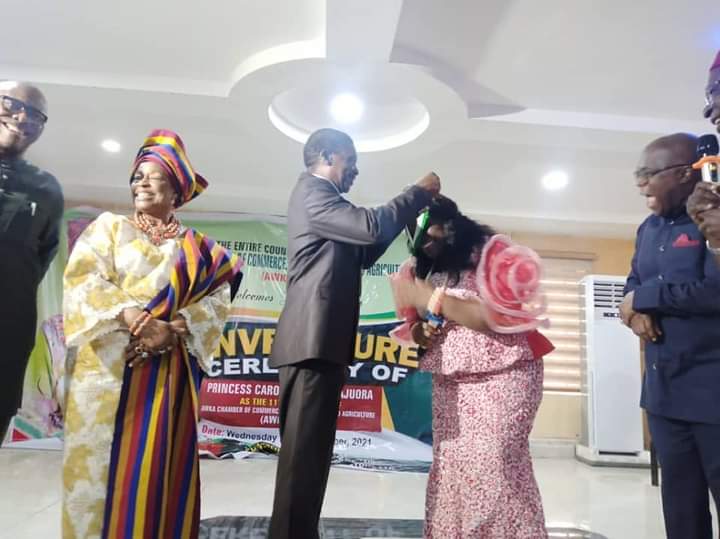 The first woman to become the President of the Awka Chamber of Commerce, Industry, Mines and Agriculture has now taken over the mantle of leadership of the Chamber at an investiture ceremony of the Association held in Awka.