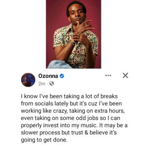 “I know I’ve been taking a lot of breaks from socials lately but it’s cuz I’ve been working like crazy, taking on extra hours, even taking on some odd jobs so I can properly invest into my music. It may be a slower process but trust & believe it’s going to get done.,” the musician said in a post on Tuesday, April 4, 2023.
