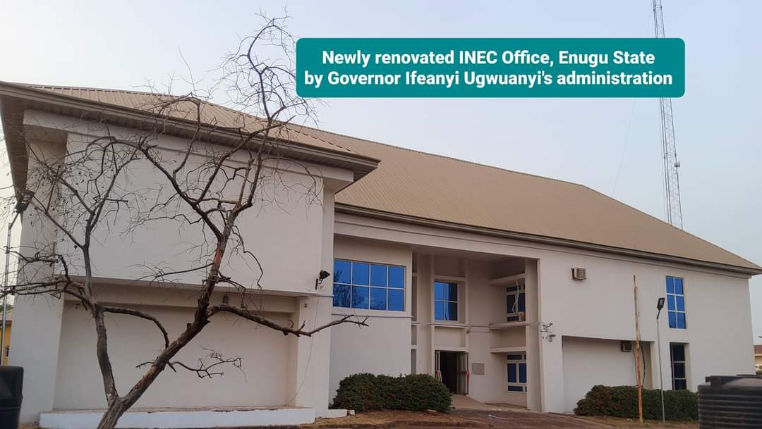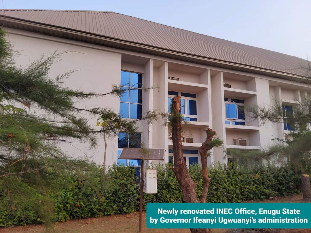 Governor Ifeanyi Ugwuanyi of Enugu State, on Friday, inaugurated and handed over the newly renovated Enugu State Office of the Independent National Electoral Commission (INEC), burnt by unknown gunmen some months ago.