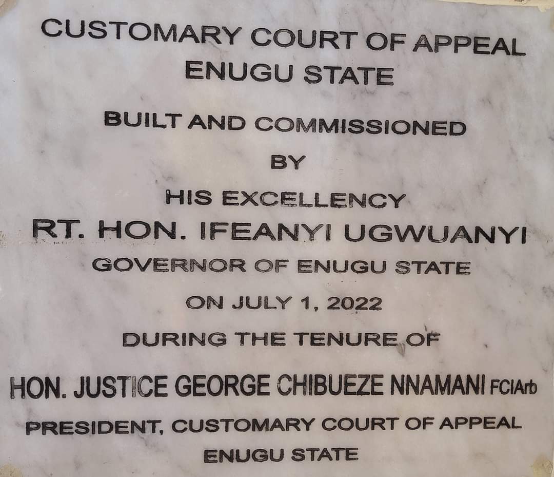 Named after a foremost jurist from Enugu State and Honourable Justice of the Supreme Court, Chima Centus Nweze as “Honourable Justice Chima Centus Nweze Complex, Customary Court of Appeal Headquarters, Enugu State Judiciary”, the edifice, located within the Three Arms Zone of the Independence Layout, Enugu, is the first headquarter complex of the Customary Court of Appeal in the state.