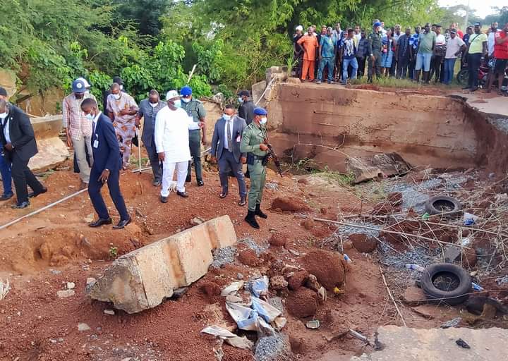 #Governor Ifeanyi #Ugwuanyi of #Enugu State, on Tuesday, inspected the erosion menace at Atavu Bridge, along Amechi-Agbani Road by Amodu Awkunanaw in Nkanu West Local Government Area of the state, directing the State Ministry of Works and Infrastructure to immediately commence remediation on the infrastructure to restore it to good condition for safety of motorists and other road users, amid cheers from residents.