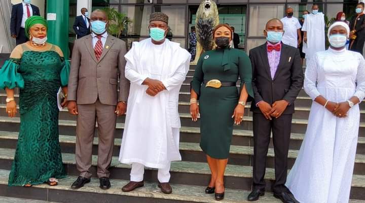 Gov. Ugwuanyi equally swore in Commissioners in the reconstituted Enugu State Local Government Service Commission, with Professor of Political Science and renowned Consultant, Prof. Osy Okanya, as Chairman.