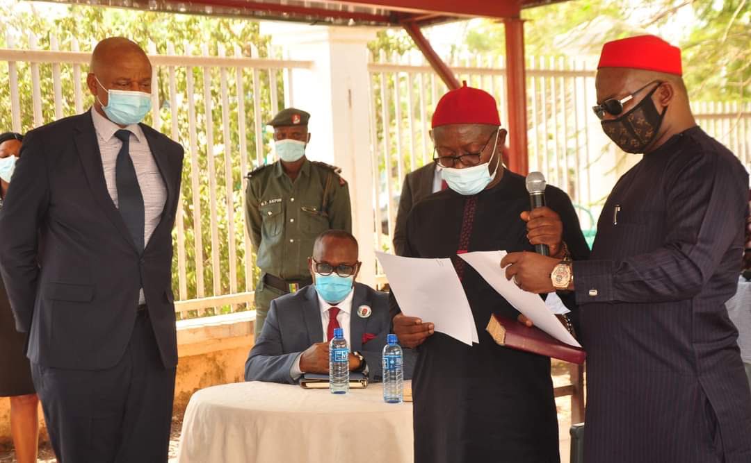Governor Ifeanyi Ugwuanyi of Enugu State, on Thursday, swore in Barr. Anthony Ugochukwu Ugwunnadi and Barr. George Obiora Ani as members of Enugu State Independent Electoral Commission (ENSIEC)