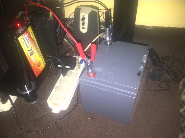 I bought my 40ah battery brand new at oshodi for 6k its equivalent to deep cycle batteries and I bought my 20amp smart battery charger at idioro mushin for 7k, with this u can stay connected to ur favorite programs on TV or watch movies on ur LCD via external hdd, if u already have an LCD TV, just check the watts ,if its above 100, then u need to get a 15inch monitor that has AV input II bought mine 5k at computer village, the smart charger charges the battery,the ups stands as the power, my 15inch monitor is 34watts while the blu ray player is just 16watts.