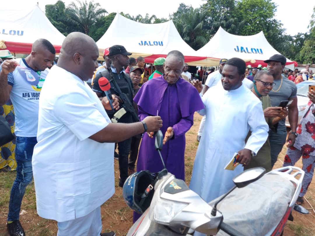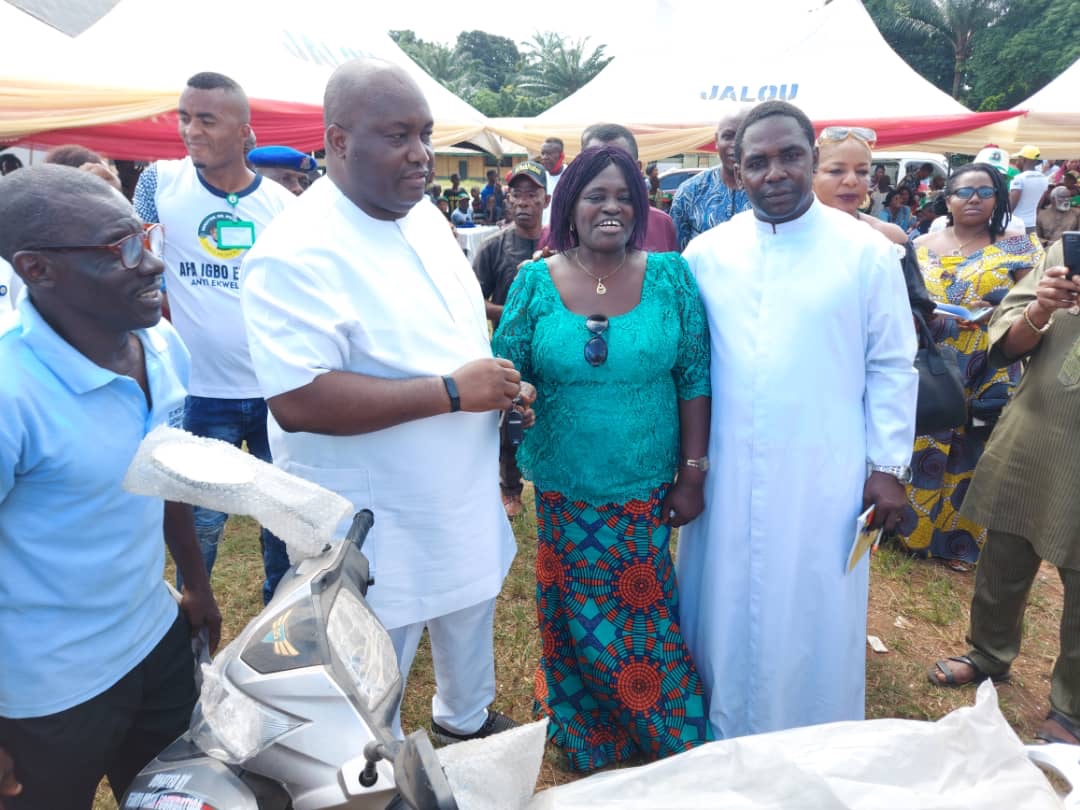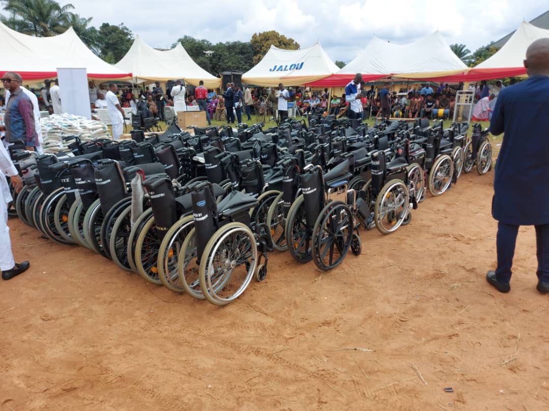 After the mass, the Senator proceeded to a get-together with people living with various forms of disabilities who gathered en masse to celebrate with him at the church field. During the meeting, the Senator thanked them for the honour they showed him by choosing to celebrate with him. He further informed them that there is always an ability in disability and urged them to remain diligent and never lose hope as heaven will always bless their efforts. After addressing them, the Senator presented wheel chairs, clutches, special walking sticks, bags of rice, cartons of noodles and brand new Android smartphones that are capable of serving their mobile phone and internet needs seamlessly regardless of their disabilities. He also appointed one of them Comrade Amobi Okonkwo as his Senior Special Assistant on People Living With Disabilities.