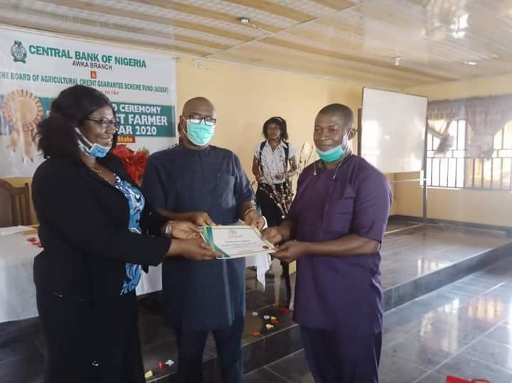 The award is issued by Central Bank of Nigeria and the Board of Agricultural Credit Guarantee Scheme Fund, ACGSF, through the Awka Branch of the apex Bank.